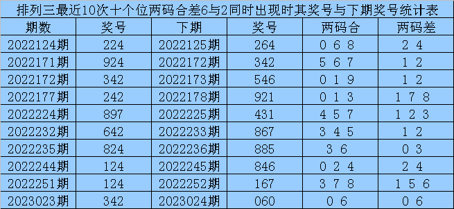 从以上统计不错看出,十个位两码合差6与2同期出现之后其下期两码合差领略最热的4个辨认为:1236,本期十个位两码合差不错参考这四码中的数据。