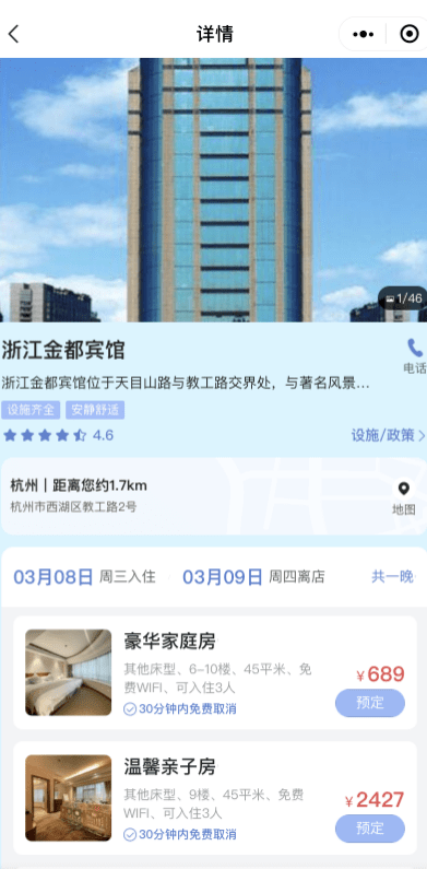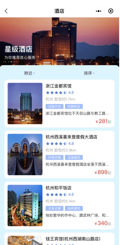 以 “星级酒店”为例,皇冠手机登录入口点击该分类选项后,参加信息页面,点击给与满意的酒店后即可了解详备信息并进行预定。