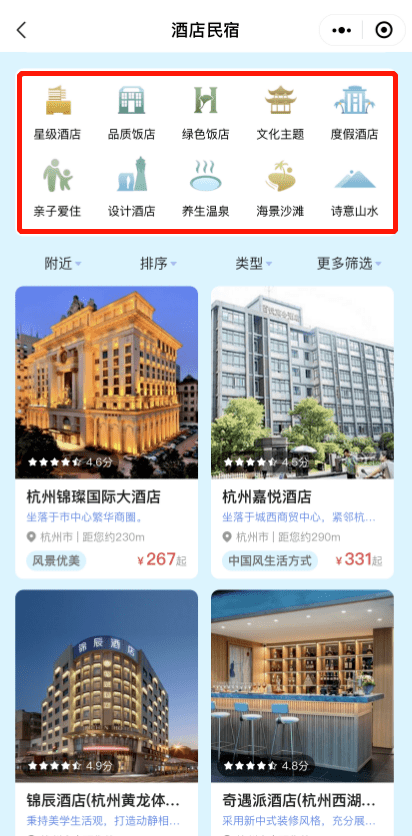 以“酒店”版本为例,您不错凭据需求点击 “星级酒店”“品性饭馆”“绿色饭馆”“文化主题”“度假酒店”“亲子爱住”等进行分类浏览,让您用最优惠的价钱享受到超高品性的办事。