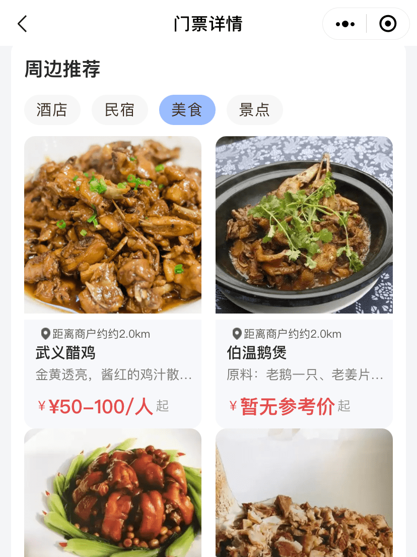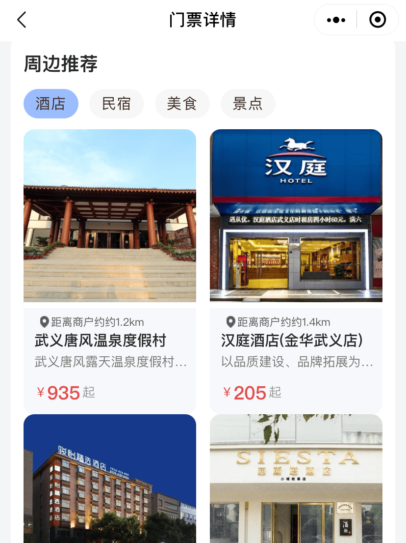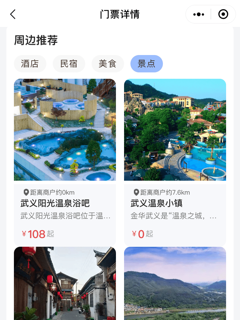 同期,该页面会凭据特价景区的位置为您保举临近的 “酒店”“民宿”“好意思食”“景点”,吃、住、行全部安排得当,为您提供绵薄宽心的出游攻略。